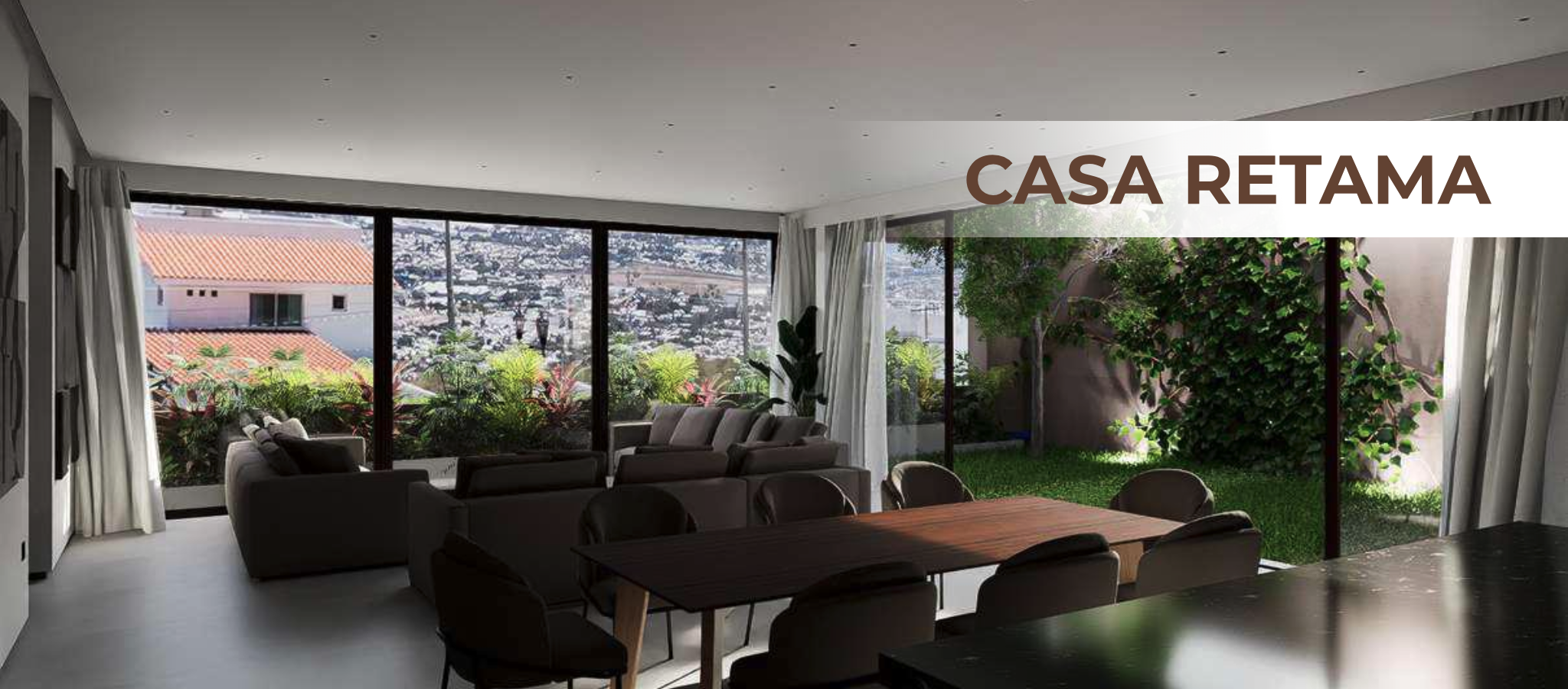 escubre la Casa Retama, 320 m2 de diseño que celebra lal luz y la amplitud, con vistas impresionantes que transtorman cada cia. un gran espacio comun integra el interior y el exterior, permitiendo que sala, comedor y cocina se fundan en el ambiente perfecto para la convivencia y la inspiración.